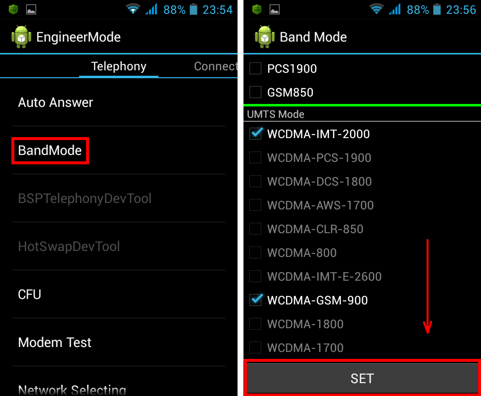 Посредством инженерного меню можно уменьшить нагрузку на аккумулятор устройства. Сделать это можно в разделе BandMode на вкладке Telephony. Это тот самый пункт, что позволяет выбрать сканируемые GSM-частоты. Схема действий достаточно проста: