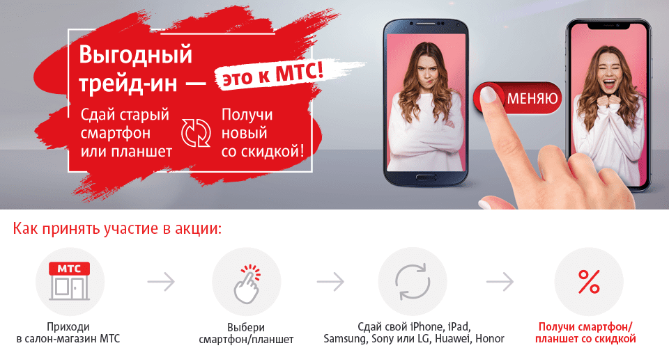 - Трейд-ин экономит время пользователя. Ему уже не нужно самостоятельно искать покупателя по сайтам объявлений из серии «из рук в руки». Достаточно прийти в ближайший салон МТС.