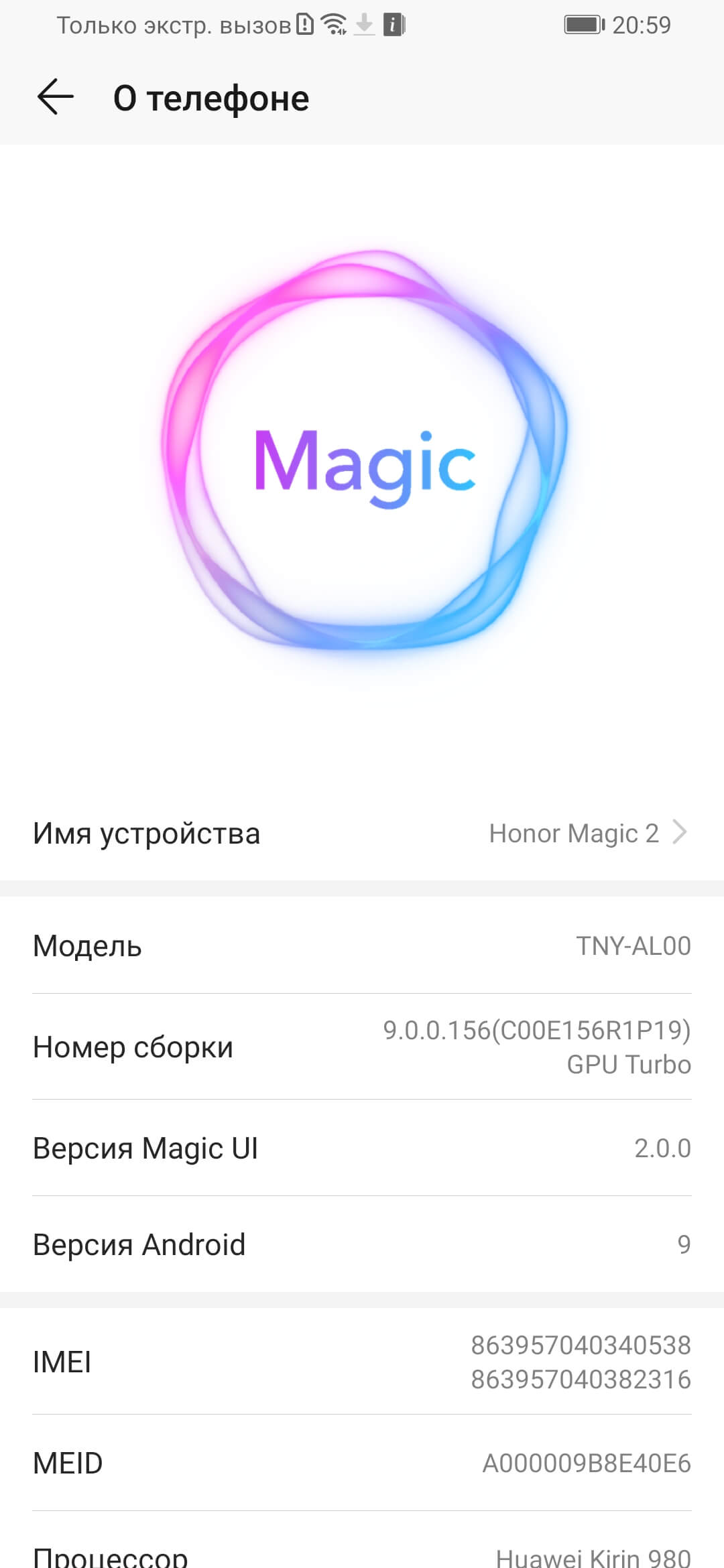 На смартфоне установлена операционная система Android 9.0. В нашей версии смартфона привычной EMUI нет. Вместо неё используется китайский вариант Magic версии 2.0.