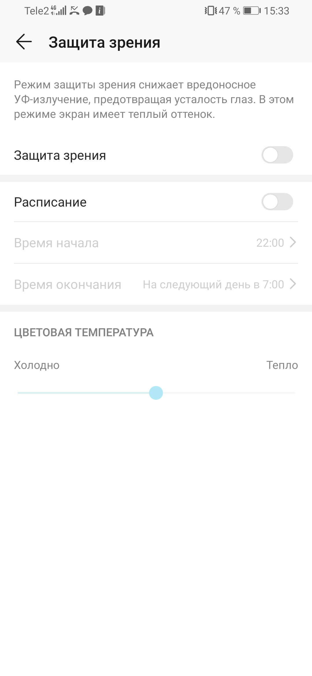 В системную оболочку включена защита от вредоносного УФ-излучения. Говоря по-русски, это режим выставления тёплого цвета матрицы для просмотра экрана в ночное время.