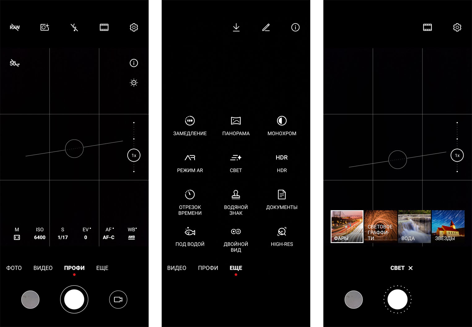 - Увеличение ISO до 25600 при съемке в режиме Pro