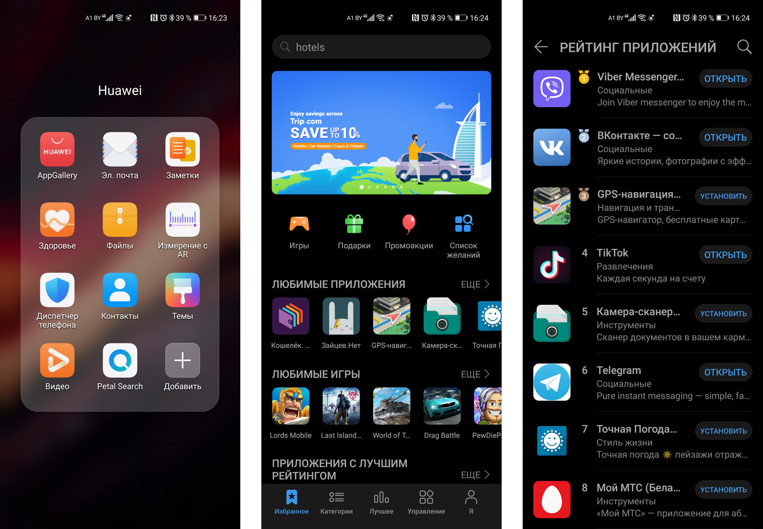 Программы и приложения также можно установить из Huawei AppGallery — аналога Google Play. В этом магазине уже есть большая часть популярных в России сервисов и приложений. Те же «ВКонтакте», «Одноклассники», сервисы «Яндекса», Mail.Ru Group работают в полном объёме. Общаться можно при помощи того же «Контакта», Viber и Telegram. Бесконтактная оплата работает только для карт Mastercard 40 крупнейших банков страны.