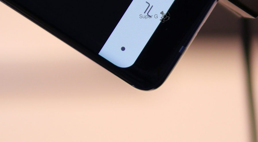 Дисплей прикрывает защитное стекло Corning Gorilla Glass 5 с искривлёнными боковыми гранями и олеофобным покрытием. Углы экрана закруглены, что создаёт очень необычные ощущения.