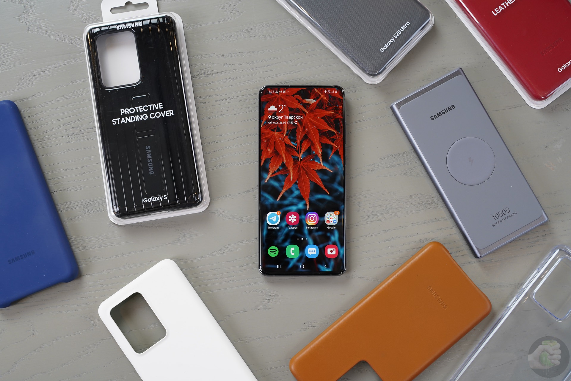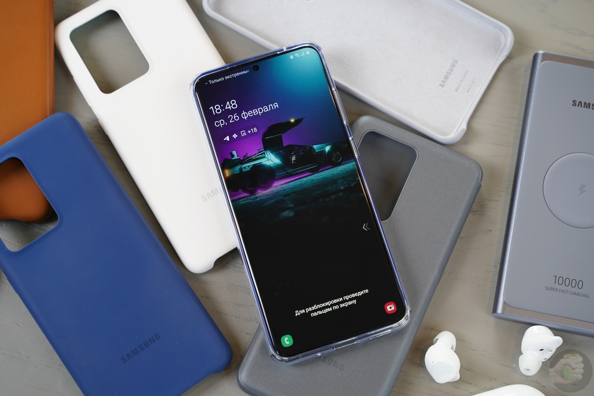 Full HD видео проигрывалось около девяти с половиной часов на максимальной яркости, игры с высоким уровнем обновления экрана (от 90 до 120 Гц) разрядили смартфон за 5,5 часов. Проще говоря, на день не очень напряженной работы полного заряда хватит, но ночью уже придется оставить смартфон у розетки. Кстати, теперь Samsung предлагает в качестве аксессуара внешний пауэр-банк с беспроводной зарядкой. Он подойдет и для Samsung Galaxy S20 Ultra.