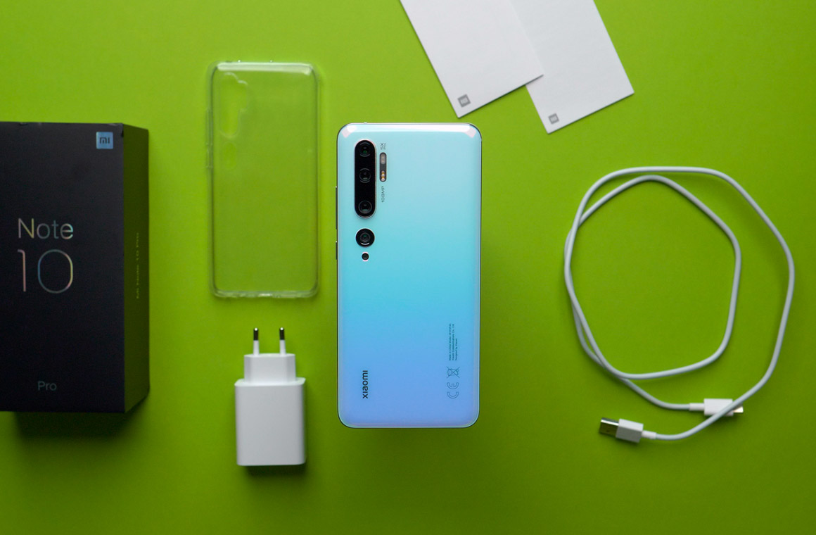 По дизайну, не считая того, что это почти клон Huawei P30 Pro сказать особо нечего. Стекло, алюминиевый кант и пластиковые вставки антенн — все стандартно, но при этом качественно и без особых претензий. Кстати, белый цвет этому смартфону к лицу и смотрится он хорошо и отпечатки на нем видны меньше и царапины. Хотя сама поверхность глянцевая и неплохо так бликует. В коробке кроме самого Mi Note 10 Pro вы найдете прозрачный силиконовый чехол, кабель Type-C, быструю зарядку и немного инструкций.