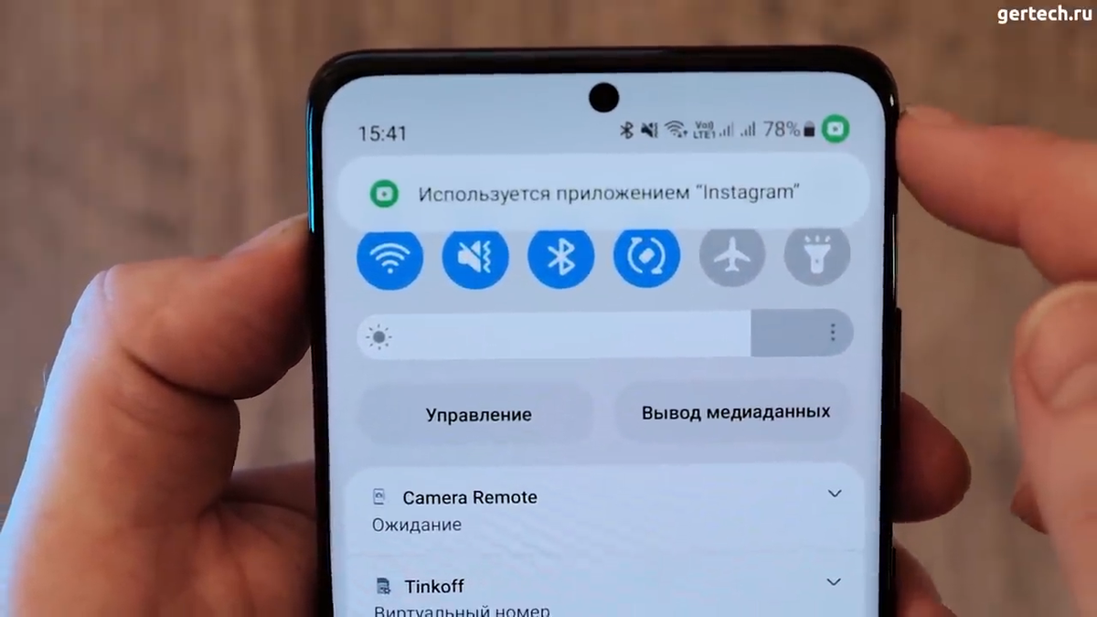 One UI 4 также имеет индикаторы приватности в правом верхнем углу. Если приложение использует камеру или микрофон, то вы увидите соответствующий значок.