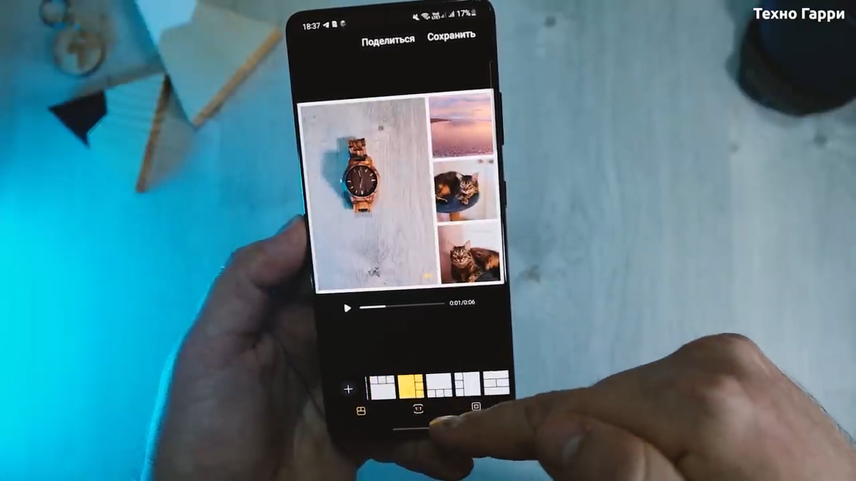 Если мы выделим несколько фотографий и видео и перейдем в Опции, далее Создать, далее Коллаж. Здесь мы можем выбрать различные шаблоны для коллажа.