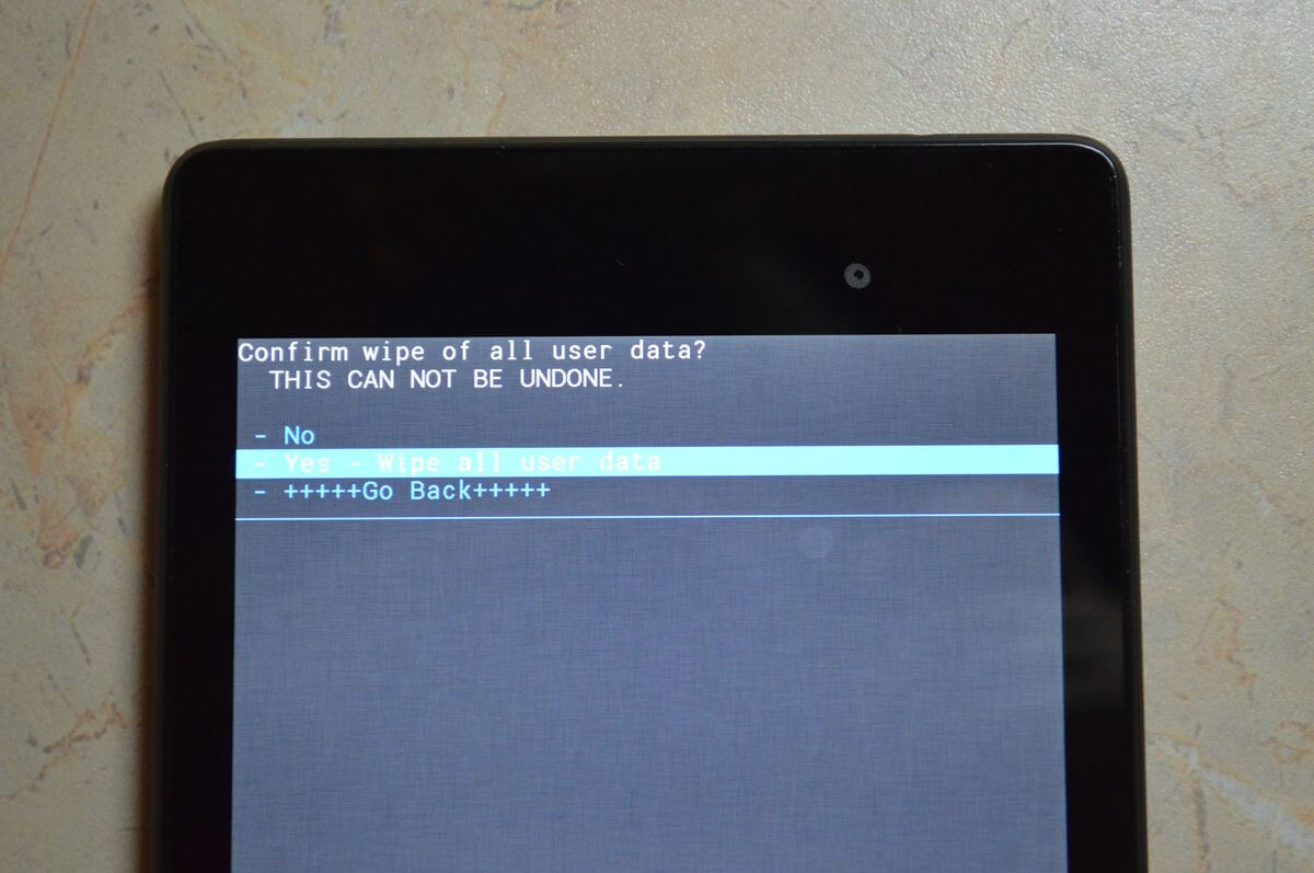 3. Далее просто подтвердите, что согласны сделать сброс настроек: «Yes – Wipe all user data».