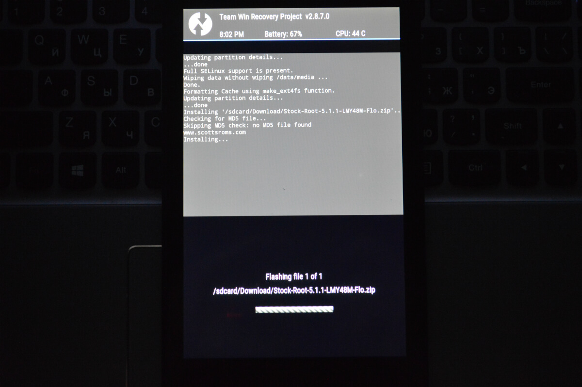 Теперь ваш Android откроет и проверит update.zip. Затем zip.file будет загружен на вашем Android. Процесс займёт довольно много времени, поэтому не отключайте гаджет и не выключайте компьютер, иначе рискуете получить «кирпич». Когда процесс завершится, вы увидите что-то вроде «Install from ADB complete». Готово!