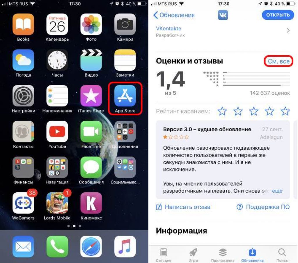 Также доступна система оценок и отзывов. Каждому пользователю, который скачал и использовал приложение в течении некоторого времени, отправляется запрос на оценку. Максимальная 5 звезд.